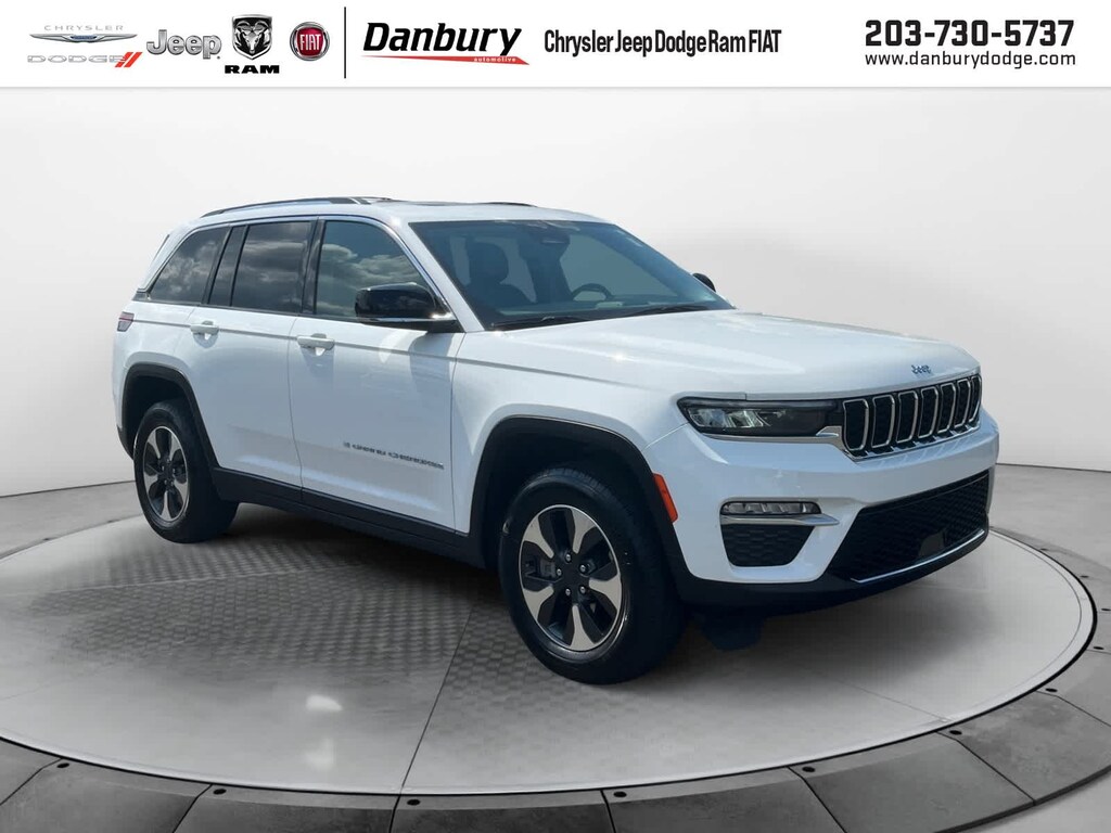 TRANSMISSION: 8-SPEED AUTOMATIC 8P75PH PHEV (STD), ENGINE: 2.0L I4 DOHC DI TURBO PHEV (STD). Jeep Grand Cherokee 4xe with Bright White Clearcoat exterior and Global Black interior features a 4 Cylinder Engine with 375 HP at 5250 RPM*.