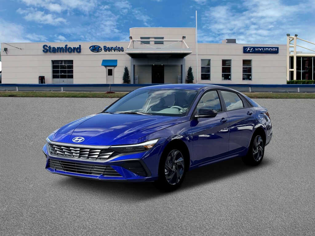 Intense Blue 2026 Hyundai Elantra SEL Sport FWD CVT I4 4-Wheel Disc Brakes, 6 Speakers, ABS brakes, Air Conditioning, Alloy wheels, AM/FM radio, Apple CarPlay & Android Auto, Auto High-beam Headlights, Automatic temperature control, Brake assist, Bumpers: body-color, Delay-off headlights, Driver door bin, Driver vanity mirror, Dual front impact airbags, Dual front side impact airbags, Electronic Stability Control, Exterior Parking Camera Rear, Front anti-roll bar, Front Bucket Seats, Front Center Armrest, Front dual zone A/C, Front reading lights, Front wheel independent suspension, Fully automatic headlights, Illuminated entry, Low tire pressure warning, Occupant sensing airbag, Option Group 01, Outside temperature display, Overhead airbag, Overhead console, Panic alarm, Passenger door bin, Passenger vanity mirror, Power door mirrors, Power steering, Power windows, Premium Cloth Seat Trim, Radio: AM/FM/HD Display Audio, Rear side impact airbag, Rear window defroster, Remote keyless entry, Security system, Speed control, Speed-sensing steering, Spoiler, Steering wheel mounted audio controls, Tachometer, Telescoping steering wheel, Tilt steering wheel, Traction control, Trip computer, Variably intermittent wipers, Wheels: 17" x 7.0J Alloy Gloss Black w/Dark Finish.