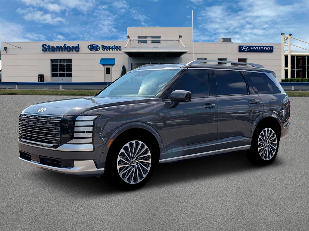 Ecotronic Gray Pearl 2026 Hyundai Palisade Hybrid Calligraphy AWD 6-Speed Automatic 2.5L Turbocharged GDI 4-Cylinder Hybrid 100W Charging Cable, 14 Speakers, 3rd row seats: split-bench, 4-Wheel Disc Brakes, ABS brakes, Air Conditioning, Alloy wheels, AM/FM radio: SiriusXM, Apple CarPlay & Android Auto, Audio memory, Auto High-beam Headlights, Auto-dimming door mirrors, Auto-dimming Rear-View mirror, Auto-leveling suspension, Automatic temperature control, Brake assist, Bumpers: body-color, Carpeted Floor Mats, Compass, Delay-off headlights, Driver door bin, Driver vanity mirror, Dual front impact airbags, Dual front side impact airbags, Electronic Stability Control, Emergency communication system: None, Exterior Parking Camera Rear, Four wheel independent suspension, Front anti-roll bar, Front Bucket Seats, Front Center Armrest, Front dual zone A/C, Front reading lights, Fully automatic headlights, Garage door transmitter: HomeLink, Genuine wood console insert, Genuine wood dashboard insert, Heads-Up Display, Heated and Ventilated Front Bucket Seats, Heated door mirrors, Heated front seats, Heated rear seats, Heated steering wheel, HVAC memory, Illuminated entry, Knee airbag, Leather steering wheel, Low tire pressure warning, Memory seat, Navigation System, Occupant sensing airbag, Option Group 01, Outside temperature display, Overhead airbag, Overhead console, Panic alarm, Passenger door bin, Passenger vanity mirror, Power door mirrors, Power driver seat, Power Liftgate, Power moonroof, Power passenger seat, Power steering, Power windows, Premium Nappa Leather Seat Trim, Radio data system, Radio: Infotainment Navigation System, Rain sensing wipers, Rear air conditioning, Rear anti-roll bar, Rear audio controls, Rear reading lights, Rear side impact airbag, Rear window defroster, Rear window wiper, Reclining 3rd row seat, Remote keyless entry, Security system, Side Steps, Speed control, Split folding rear seat, Spoiler, Steering wheel mounted audio controls, Tachometer, Telescoping steering wheel, Tilt steering wheel, Traction control, Trip computer, Turn signal indicator mirrors, Variably intermittent wipers, Ventilated front seats, Ventilated rear seats, Wheels: 21" x 8.5J Alloy.