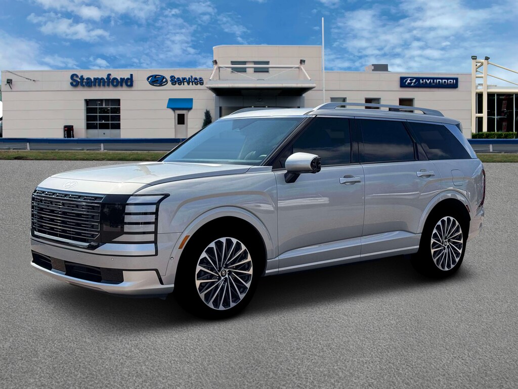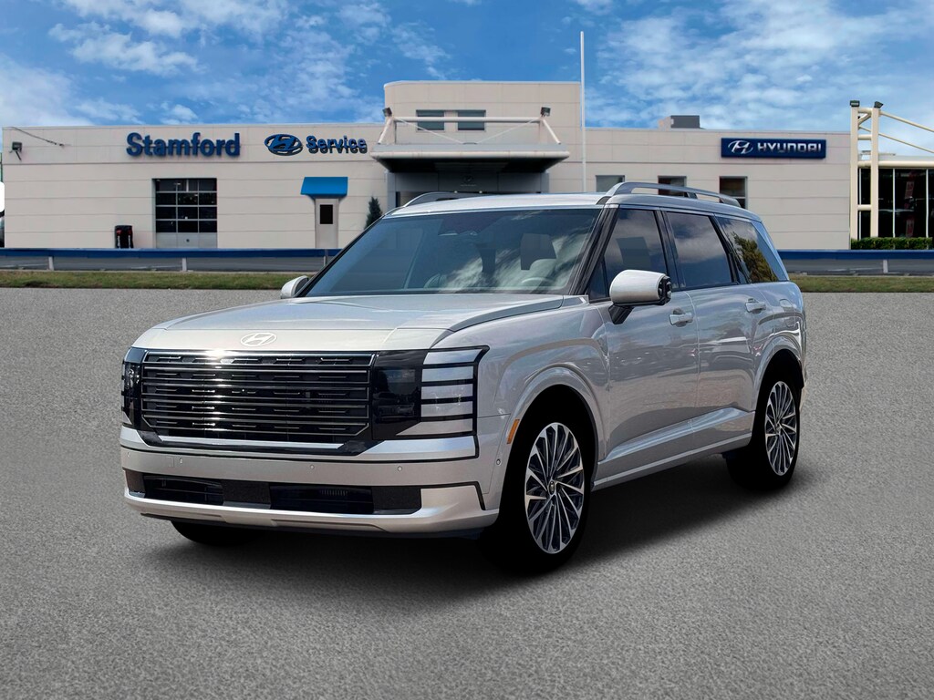 Typhoon Silver Metallic 2026 Hyundai Palisade Hybrid Calligraphy AWD 6-Speed Automatic 2.5L Turbocharged GDI 4-Cylinder Hybrid 14 Speakers, 3rd row seats: split-bench, 4-Wheel Disc Brakes, ABS brakes, Air Conditioning, Alloy wheels, AM/FM radio: SiriusXM, Apple CarPlay & Android Auto, Audio memory, Auto High-beam Headlights, Auto-dimming door mirrors, Auto-dimming Rear-View mirror, Auto-leveling suspension, Automatic temperature control, Brake assist, Bumpers: body-color, Compass, Delay-off headlights, Driver door bin, Driver vanity mirror, Dual front impact airbags, Dual front side impact airbags, Electronic Stability Control, Emergency communication system: Bluelink+, Exterior Parking Camera Rear, Four wheel independent suspension, Front anti-roll bar, Front Bucket Seats, Front Center Armrest, Front dual zone A/C, Front reading lights, Fully automatic headlights, Garage door transmitter: HomeLink, Genuine wood console insert, Genuine wood dashboard insert, Heads-Up Display, Heated & Ventilated Front Bucket Seats, Heated door mirrors, Heated front seats, Heated rear seats, Heated steering wheel, HVAC memory, Illuminated entry, Knee airbag, Leather steering wheel, Low tire pressure warning, Memory seat, Navigation System, Occupant sensing airbag, Option Group 01, Outside temperature display, Overhead airbag, Overhead console, Panic alarm, Passenger door bin, Passenger vanity mirror, Power door mirrors, Power driver seat, Power Liftgate, Power moonroof, Power passenger seat, Power steering, Power windows, Premium Nappa Leather Seat Trim, Radio data system, Radio: Infotainment Navigation System, Rain sensing wipers, Rear air conditioning, Rear anti-roll bar, Rear audio controls, Rear reading lights, Rear side impact airbag, Rear window defroster, Rear window wiper, Reclining 3rd row seat, Remote keyless entry, Security system, Speed control, Split folding rear seat, Spoiler, Steering wheel mounted audio controls, Tachometer, Telescoping steering wheel, Tilt steering wheel, Traction control, Trip computer, Turn signal indicator mirrors, Variably intermittent wipers, Ventilated front seats, Ventilated rear seats, Wheels: 21" x 8.5J Alloy.