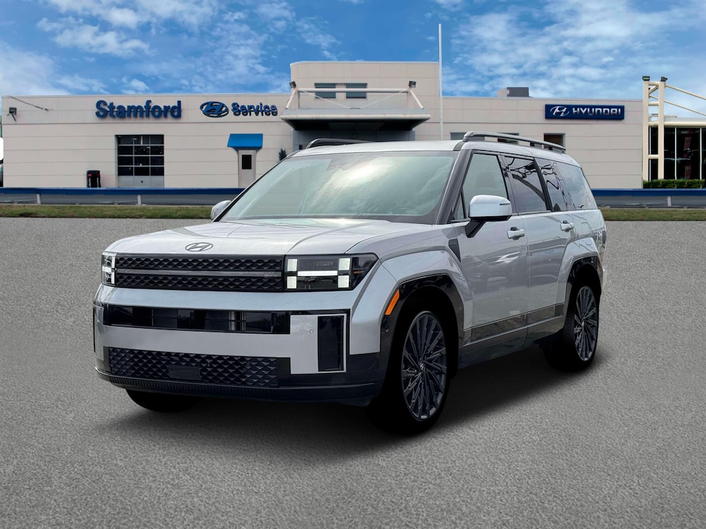 Shimmering Silver Pearl 2026 Hyundai Santa Fe Calligraphy AWD 8-Speed Automatic with SHIFTRONIC 2.5L I4 12 Speakers, 3rd row seats: bench, 4-Wheel Disc Brakes, ABS brakes, Air Conditioning, All Season Fitted Liners, Alloy wheels, AM/FM radio: SiriusXM, Apple CarPlay & Android Auto, Auto High-beam Headlights, Auto-dimming Rear-View mirror, Automatic temperature control, Brake assist, Bumpers: body-color, Cargo Cover/Screen, Cargo Net, Carpeted Floor Mats, Delay-off headlights, Driver door bin, Driver vanity mirror, Dual front impact airbags, Dual front side impact airbags, Electronic Stability Control, Emergency communication system, Exterior Parking Camera Rear, First Aid Kit, Four wheel independent suspension, Front anti-roll bar, Front Bucket Seats, Front Center Armrest, Front dual zone A/C, Front reading lights, Fully automatic headlights, Garage door transmitter: HomeLink, Heads-Up Display, Heated & Ventilated Front Bucket Seats, Heated door mirrors, Heated front seats, Heated rear seats, Heated steering wheel, Illuminated entry, Knee airbag, Leather steering wheel, Low tire pressure warning, Memory seat, Navigation System, Occupant sensing airbag, Option Group 01, Outside temperature display, Overhead airbag, Overhead console, Panic alarm, Passenger door bin, Passenger vanity mirror, Power door mirrors, Power driver seat, Power Liftgate, Power moonroof, Power passenger seat, Power steering, Power windows, Quilted Premium Nappa Leather Seat Trim, Radio: AM/FM/HD Bose Premium Audio System, Rain sensing wipers, Rear anti-roll bar, Rear side impact airbag, Rear window defroster, Rear window wiper, Remote keyless entry, Security system, Speed control, Speed-sensing steering, Split folding rear seat, Spoiler, Steering wheel mounted audio controls, Tachometer, Telescoping steering wheel, Tilt steering wheel, Traction control, Trip computer, Turn signal indicator mirrors, Variably intermittent wipers, Ventilated front seats, Wheels: 21" x 8.5J Unique Dark Finish Alloy.