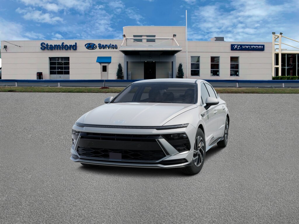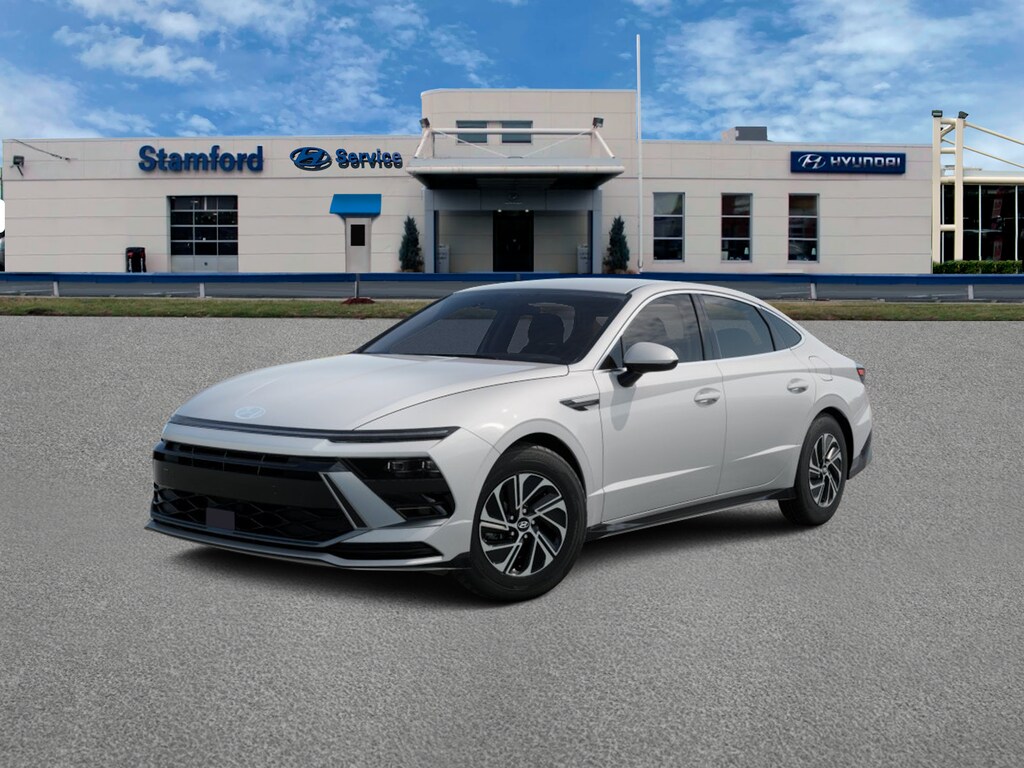 Serenity White 2026 Hyundai Sonata Hybrid Blue FWD 6-Speed Automatic with Shiftronic I4 16" x 6.5J Aluminum Alloy Wheels, 4-Wheel Disc Brakes, 6 Speakers, ABS brakes, Air Conditioning, Alloy wheels, AM/FM radio: SiriusXM, Apple CarPlay & Android Auto, Auto High-beam Headlights, Automatic temperature control, Brake assist, Bumpers: body-color, Delay-off headlights, Driver door bin, Driver vanity mirror, Dual front impact airbags, Dual front side impact airbags, Electronic Stability Control, Emergency communication system: Bluelink+, Four wheel independent suspension, Front anti-roll bar, Front Bucket Seats, Front Center Armrest, Front dual zone A/C, Front reading lights, Fully automatic headlights, Illuminated entry, Knee airbag, Lane Departure Warning System, Low tire pressure warning, Occupant sensing airbag, Option Group 01, Outside temperature display, Overhead airbag, Overhead console, Panic alarm, Passenger door bin, Passenger vanity mirror, Power door mirrors, Power steering, Power windows, Premium Cloth Seating Surfaces, Radio data system, Radio: AM/FM/HD/MP3/SiriusXM, Rear anti-roll bar, Rear side impact airbag, Rear window defroster, Remote keyless entry, Security system, Speed control, Speed-sensing steering, Speed-Sensitive Wipers, Split folding rear seat, Spoiler, Steering wheel mounted audio controls, Tachometer, Telescoping steering wheel, Tilt steering wheel, Traction control, Trip computer, Variably intermittent wipers.