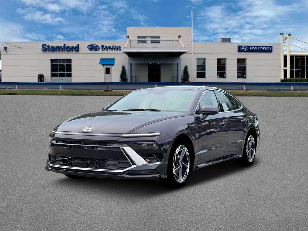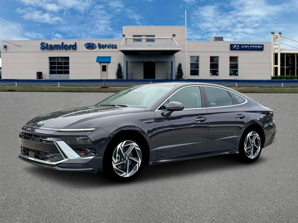 Carbon Blue 2026 Hyundai Sonata SEL Sport FWD 8-Speed Automatic I4 18" x 7.5J Aluminum Alloy Wheels, 4-Wheel Disc Brakes, 6 Speakers, ABS brakes, Air Conditioning, Alloy wheels, AM/FM radio: SiriusXM, Apple CarPlay & Android Auto, Auto High-beam Headlights, Automatic temperature control, Brake assist, Bumpers: body-color, Cargo Side Bins, Cargo Tray, Carpeted Floor Mats, Delay-off headlights, Driver door bin, Driver vanity mirror, Dual front impact airbags, Dual front side impact airbags, Electronic Stability Control, Emergency communication system: Bluelink+, Exterior Parking Camera Rear, First Aid Kit, Four wheel independent suspension, Front anti-roll bar, Front Bucket Seats, Front Center Armrest, Front dual zone A/C, Front reading lights, Fully automatic headlights, Heated door mirrors, Heated Front Bucket Seats, Heated front seats, Illuminated entry, Knee airbag, Leather steering wheel, Low tire pressure warning, Occupant sensing airbag, Option Group 01, Outside temperature display, Overhead airbag, Overhead console, Panic alarm, Passenger door bin, Passenger vanity mirror, Power door mirrors, Power driver seat, Power steering, Power windows, Premium Cloth Seating Surfaces, Radio data system, Radio: AM/FM/HD/MP3/SiriusXM, Rear anti-roll bar, Rear seat center armrest, Rear side impact airbag, Rear window defroster, Remote keyless entry, Roadside Assistance Kit, Security system, Speed control, Speed-sensing steering, Speed-Sensitive Wipers, Split folding rear seat, Steering wheel mounted audio controls, Tachometer, Telescoping steering wheel, Tilt steering wheel, Traction control, Trip computer, Variably intermittent wipers.