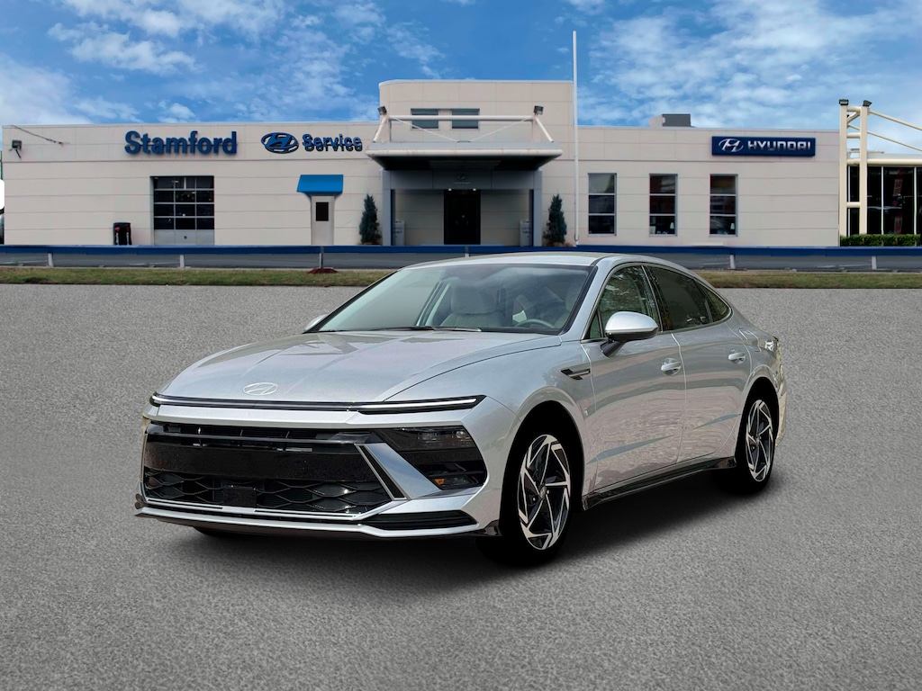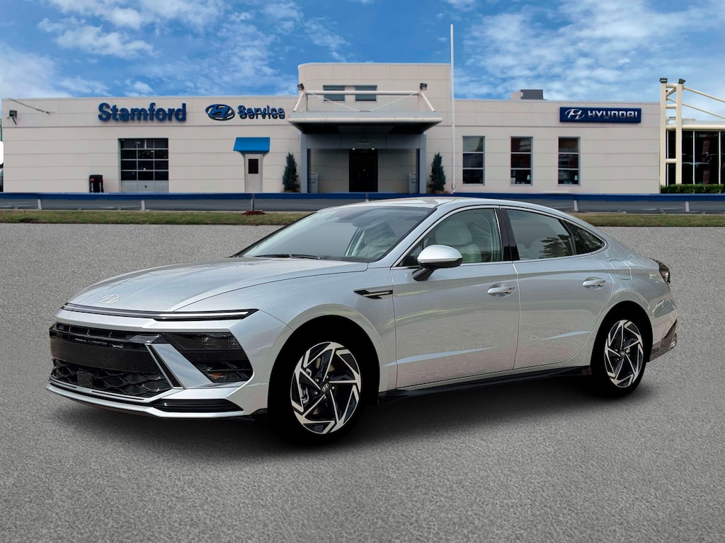 Aero Silver 2026 Hyundai Sonata SEL FWD 8-Speed Automatic I4 18" x 7.5J Aluminum Alloy Wheels, 4-Wheel Disc Brakes, 6 Speakers, ABS brakes, Air Conditioning, Alloy wheels, AM/FM radio: SiriusXM, Apple CarPlay & Android Auto, Auto High-beam Headlights, Automatic temperature control, Brake assist, Bumpers: body-color, Cargo Side Bins, Cargo Tray, Carpeted Floor Mats, Delay-off headlights, Driver door bin, Driver vanity mirror, Dual front impact airbags, Dual front side impact airbags, Electronic Stability Control, Emergency communication system: Bluelink+, Exterior Parking Camera Rear, First Aid Kit, Four wheel independent suspension, Front anti-roll bar, Front Bucket Seats, Front Center Armrest, Front dual zone A/C, Front reading lights, Fully automatic headlights, Heated door mirrors, Heated Front Bucket Seats, Heated front seats, Illuminated entry, Knee airbag, Leather steering wheel, Low tire pressure warning, Occupant sensing airbag, Option Group 01, Outside temperature display, Overhead airbag, Overhead console, Panic alarm, Passenger door bin, Passenger vanity mirror, Power door mirrors, Power driver seat, Power steering, Power windows, Premium Cloth Seating Surfaces, Radio data system, Radio: AM/FM/HD/MP3/SiriusXM, Rear anti-roll bar, Rear seat center armrest, Rear side impact airbag, Rear window defroster, Remote keyless entry, Security system, Speed control, Speed-sensing steering, Speed-Sensitive Wipers, Split folding rear seat, Steering wheel mounted audio controls, Tachometer, Telescoping steering wheel, Tilt steering wheel, Traction control, Trip computer, Variably intermittent wipers.