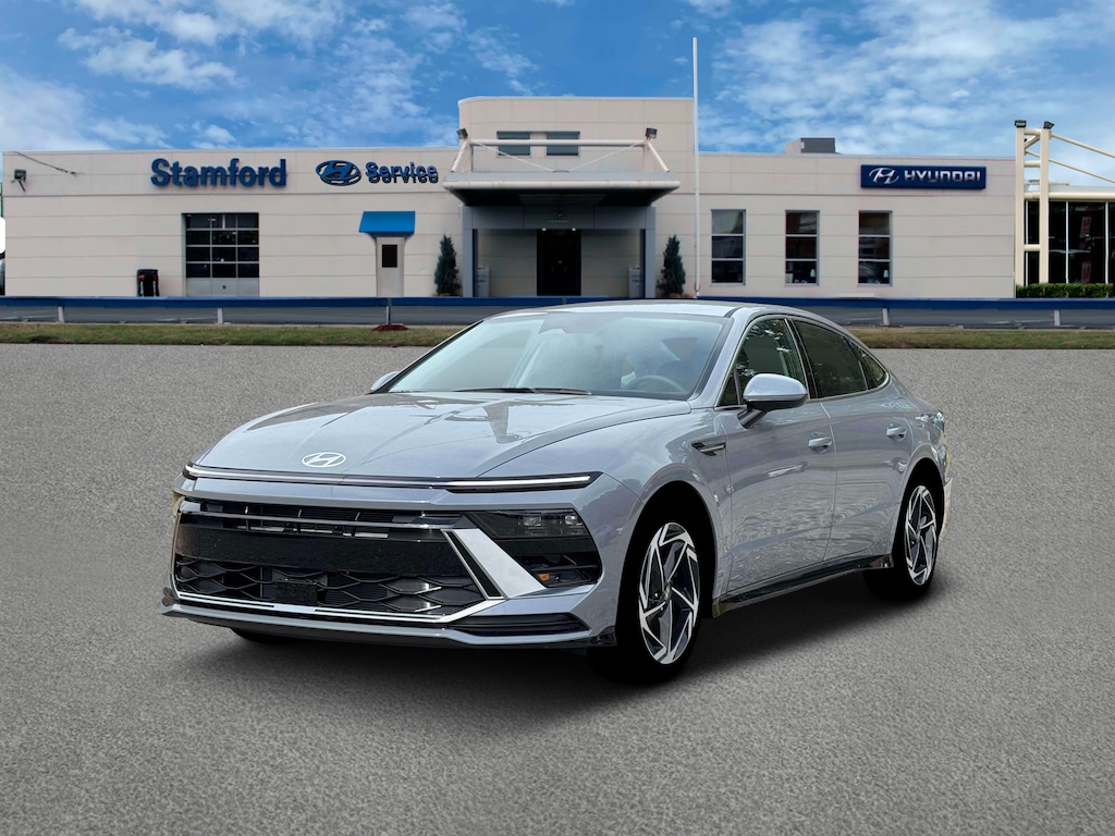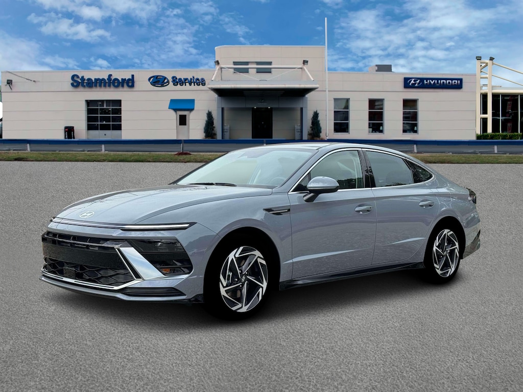 Transmission Blue 2026 Hyundai Sonata SEL AWD 8-Speed Automatic I4 18" x 7.5J Aluminum Alloy Wheels, 4-Wheel Disc Brakes, 6 Speakers, ABS brakes, Air Conditioning, Alloy wheels, AM/FM radio: SiriusXM, Apple CarPlay & Android Auto, Auto High-beam Headlights, Automatic temperature control, Brake assist, Bumpers: body-color, Cargo Tray, Carpeted Floor Mats, Delay-off headlights, Driver door bin, Driver vanity mirror, Dual front impact airbags, Dual front side impact airbags, Electronic Stability Control, Emergency communication system: Bluelink+, Exterior Parking Camera Rear, First Aid Kit, Four wheel independent suspension, Front anti-roll bar, Front Bucket Seats, Front Center Armrest, Front dual zone A/C, Front reading lights, Fully automatic headlights, Heated door mirrors, Heated Front Bucket Seats, Heated front seats, Illuminated entry, Knee airbag, Leather steering wheel, Low tire pressure warning, Occupant sensing airbag, Option Group 01, Outside temperature display, Overhead airbag, Overhead console, Panic alarm, Passenger door bin, Passenger vanity mirror, Power door mirrors, Power driver seat, Power steering, Power windows, Premium Cloth Seating Surfaces, Radio data system, Radio: AM/FM/HD/MP3/SiriusXM, Rear anti-roll bar, Rear Bumper Applique, Rear seat center armrest, Rear side impact airbag, Rear window defroster, Remote keyless entry, Roadside Assistance Kit, Security system, Speed control, Speed-sensing steering, Speed-Sensitive Wipers, Split folding rear seat, Steering wheel mounted audio controls, Tachometer, Telescoping steering wheel, Tilt steering wheel, Traction control, Trip computer, Variably intermittent wipers.